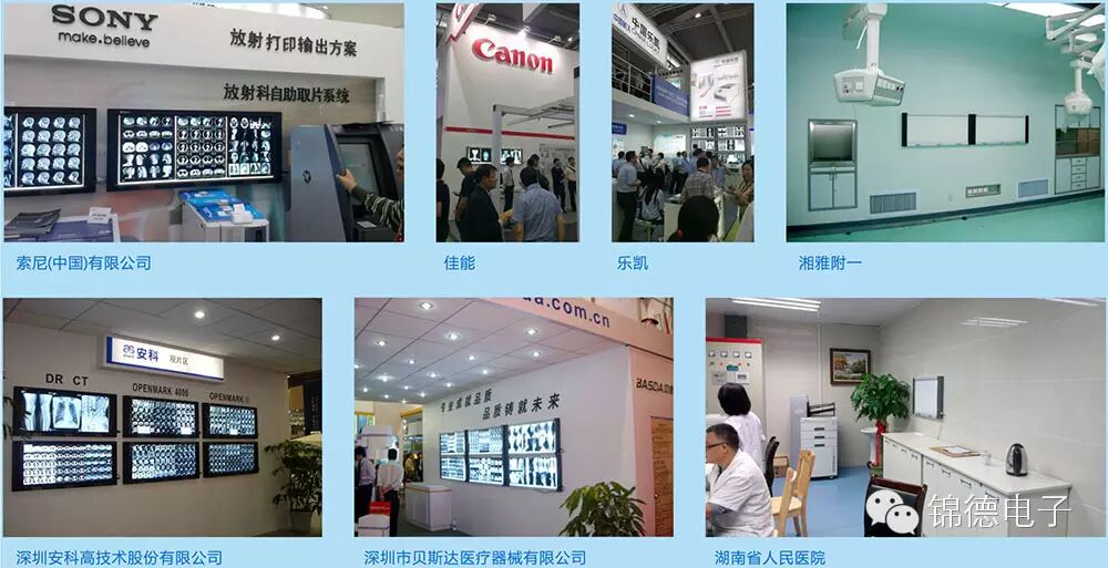 锦德科技从事医用观片灯的研发与生产已达8年之久,生产的观片灯已被国内外众多医院和机构采购、使用,其中包括中国国际医药卫生公司、湘雅医院、湖南省肿瘤医院、解放军91医院、深圳南山医院、武汉儿童医院等众多三甲医院和企业。